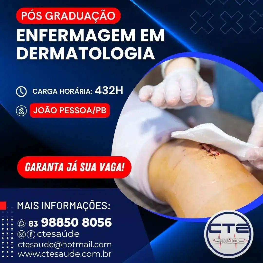É com grande satisfação que o CTE SAÚDE lhe apresenta a Pós Graduação em ENFERMAGEM EM DERMATOLOGIA em João Pessoa/PB.